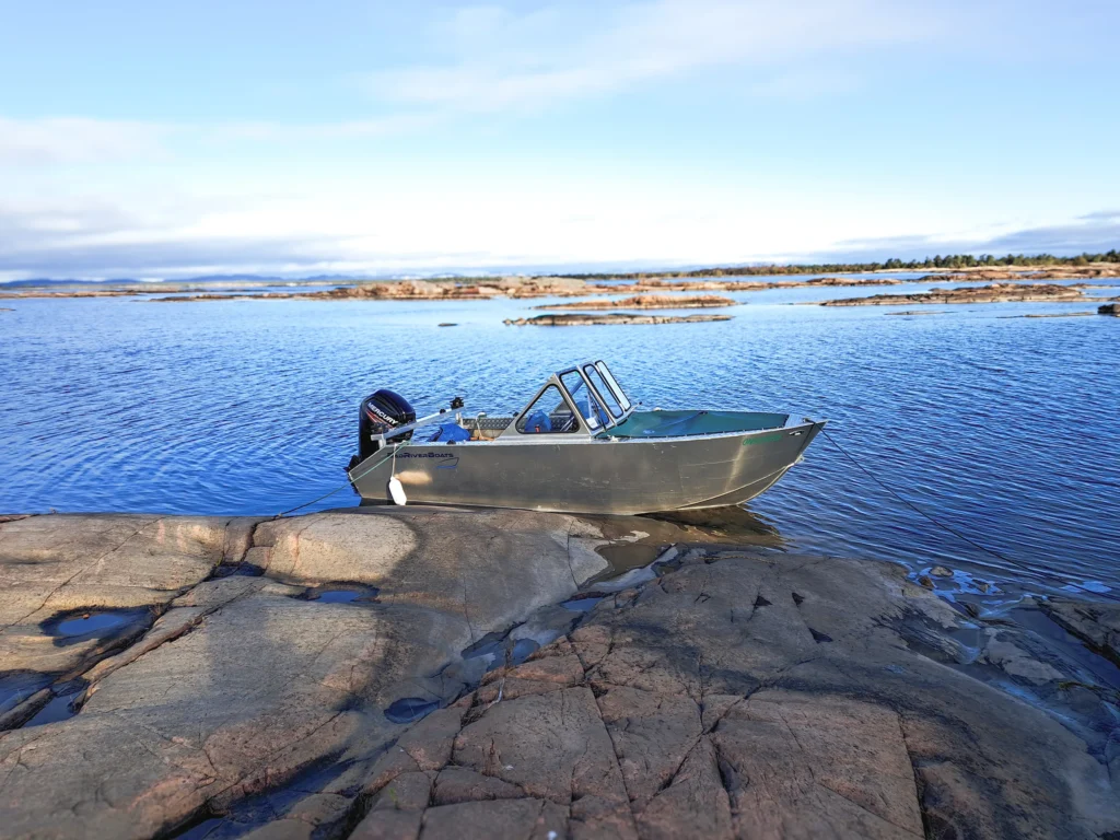 Purpose-built for precision and comfort, the 20′ Cottager delivers modern performance with a clean, versatile design. With a 36-inch freeboard, it offers added safety for families and passengers. A rear delta pad enhances planing, stability, and handling, especially under load. Standard features include a heavy-duty wiper, horn, two pedestal seats, two “Load&Lock” box seats, and a camper top, perfect for recreational use or light-duty work.