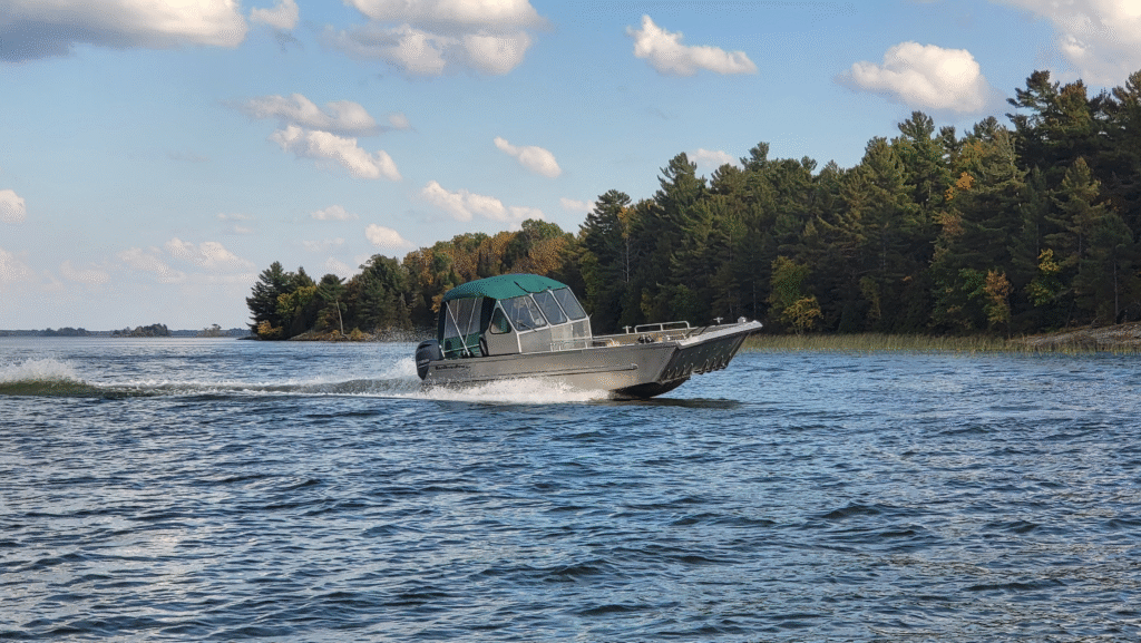 The 22′ Landing Craft delivers increased capacity and dependable strength for industrial operations and heavy transport. Featuring a 35-inch freeboard and a 78″ gate—the widest in the industry—it allows efficient loading and unloading of gear, materials, or vehicles. Built with a variable deep V deadrise hull, full-length reverse chine, 9-inch gunnels, ¼-inch longitudinal stringers, and 3/16-inch frames, it offers outstanding stability, durability, and control in demanding conditions.